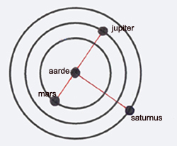 fig 18.3.1 De buiten-planeten vanuit de Aarde gezien in conflict